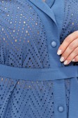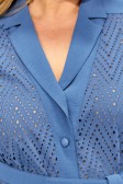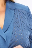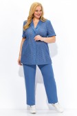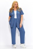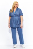 Описание: Повседневный летний брючный костюм женский на рост 164 см. Состоит из жакета и брюк. В жакете сочетаются ткани компаньоны: ришелье из 100% хлопка и вставки из полиэстера с эффектом крэш. Прямой силуэт, воротник пиджачного типа, рукав втачной короткий с отложной манжетой. Застежка центральная на петли и пуговицы. В боковых швах жакета разрезы. Дополнен поясом.