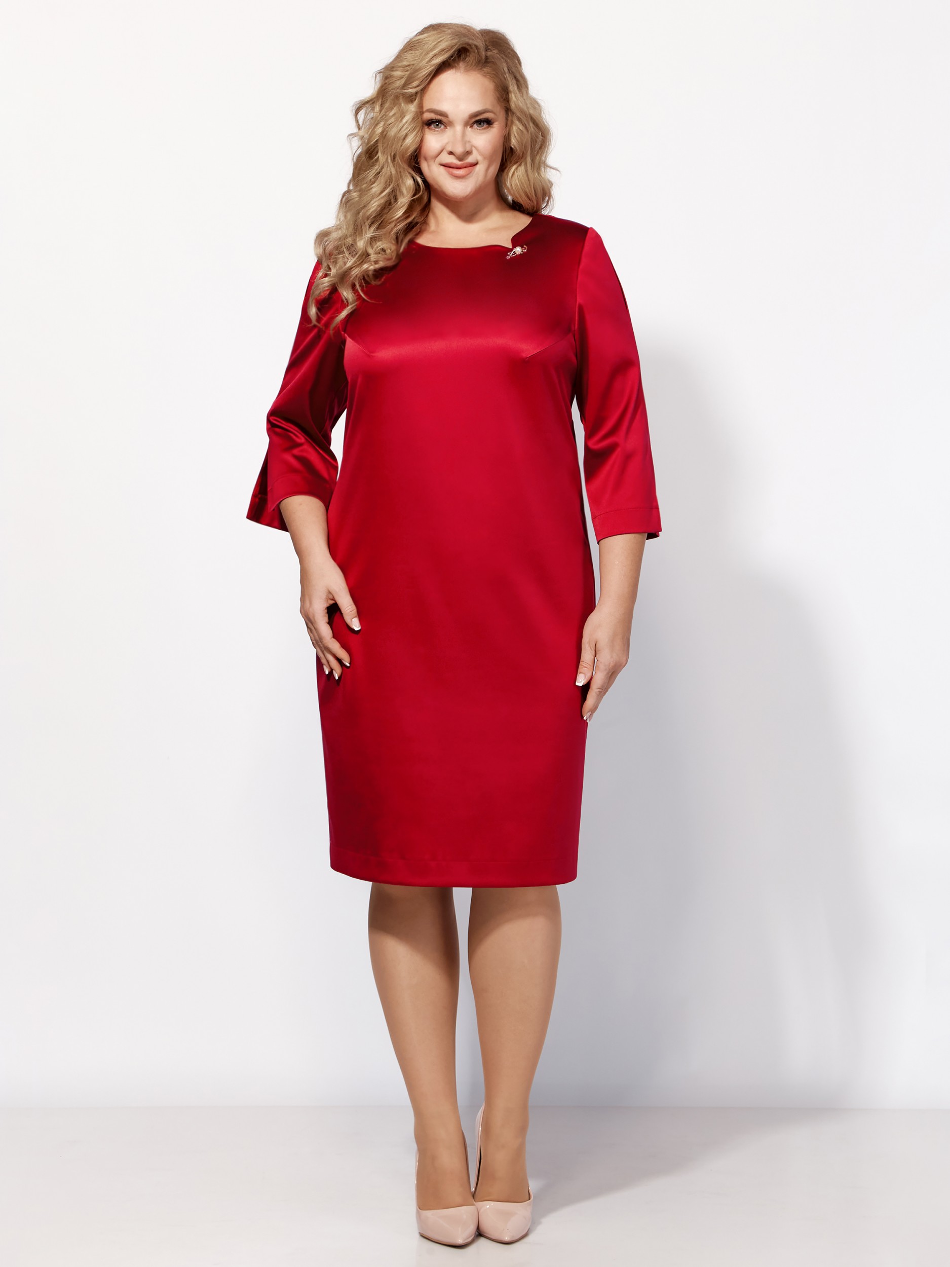 Описание: Текстильное нарядное платье женское полуприлегающего силуэта средней длины за колено на рост 164см. Рукав втачной ¾ расширенный к низу с разрезом. Вырез горловины фигурный, дополнен пришивным украшением. Перед платья с нагрудными вытачками из проймы. Спинка с плечевыми вытачками и средним швом со шлицей и застежкой-молнией.