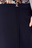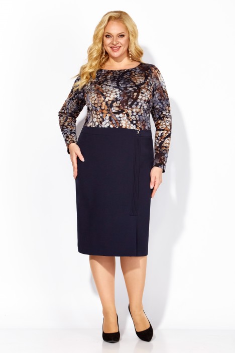Описание: Повседневное платье на рост 164 см полуприлегающего силуэта. В платье сочетается трикотажное полотно (верх) и текстильная ткань (юбка). Вырез горловины круглый. Рукав втачной длинный. Перед платья с нагрудными вытачками из проймы. Спинка со средним швом до талии и талиевыми вытачками. В среднем шве обработана потайная застежка-молния. По переду платья по юбке вертикальные защипы, переходящие в шлицу.