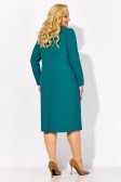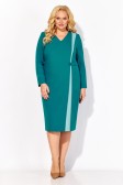 Описание: Повседневное платье на рост 164 см полуприлегающего силуэта. Вырез горловины V-образный. Рукав втачной длинный. Перед платья ассиметричного кроя, с одной стороны нагрудная вытачка из бокового шва, с другой – контрастная вставка между двумя рельефами из плеча, переходящими в складки. Платье дополнено патой с металлической нашивкой. Спинка платья со средним швом и плечевыми вытачками. В среднем шве потайная застежка молния и шлица.