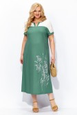 Описание: Летнее льняное платье женское с вышивкой на рост 164см. А-силуэт. Рукав реглан. Вырез горловины фигурный с окантовкой. Перед платья с нагрудными вытачками из проймы. Спинка со средним швом и разрезом. В платье сочетаются два контрастных цвета ткани. Перед платья украшен дизайнерской вышивкой, которая придает ему особый шарм и выделяет из толпы.