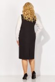 Описание: Повседневный текстильный сарафан средней длины на рост 164 см. Силуэт полуприлегающий. Вырез горловины фигурный. Перед сарафана с мягкой нагрудной вытачкой в виде складки с декоративным пояском, дополненным металлической нашивкой. По спинке плечевые вытачки и средний шов со шлицей.